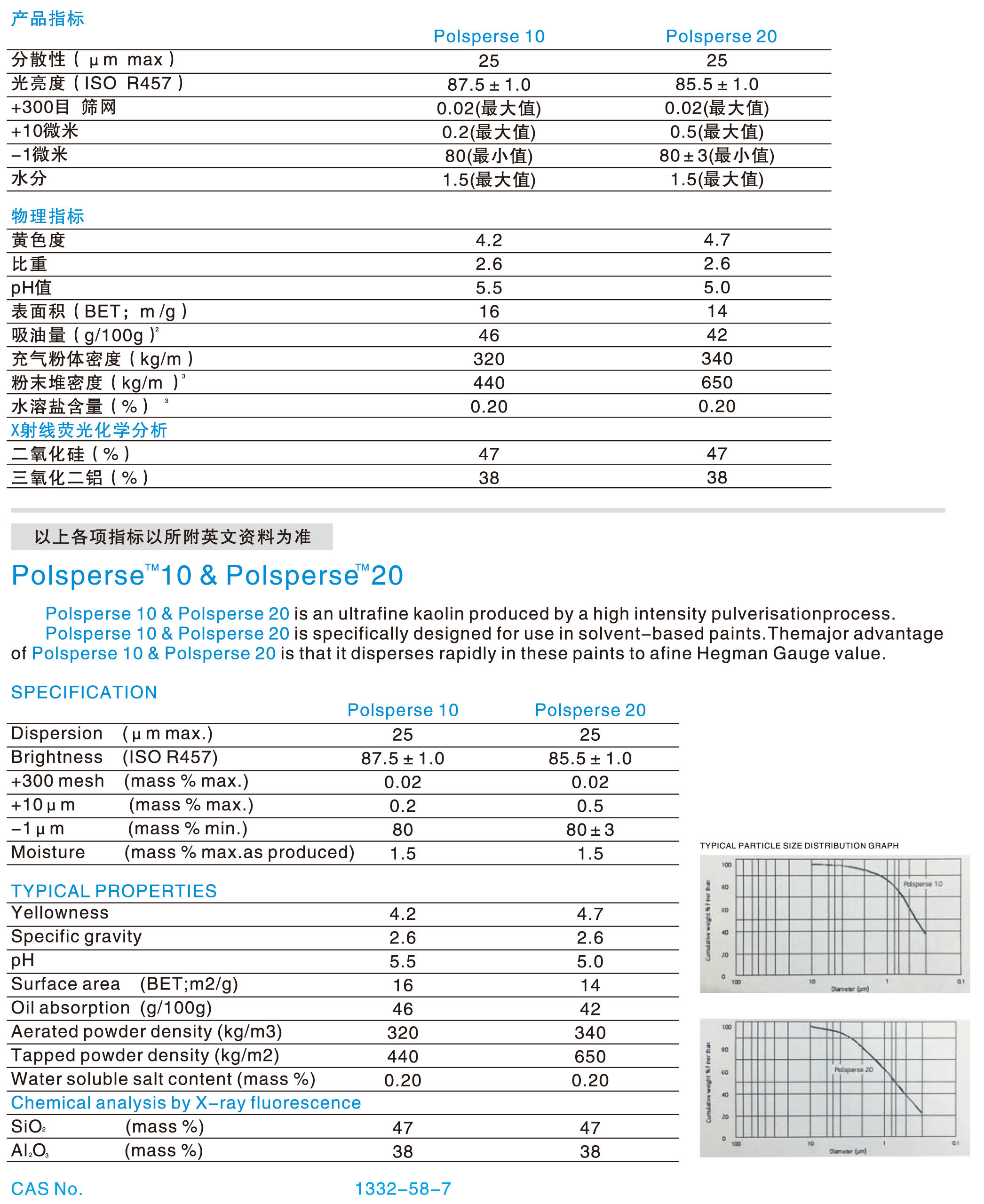 水洗(xi)高嶺土 Polsperse T10 & Polsperse 20