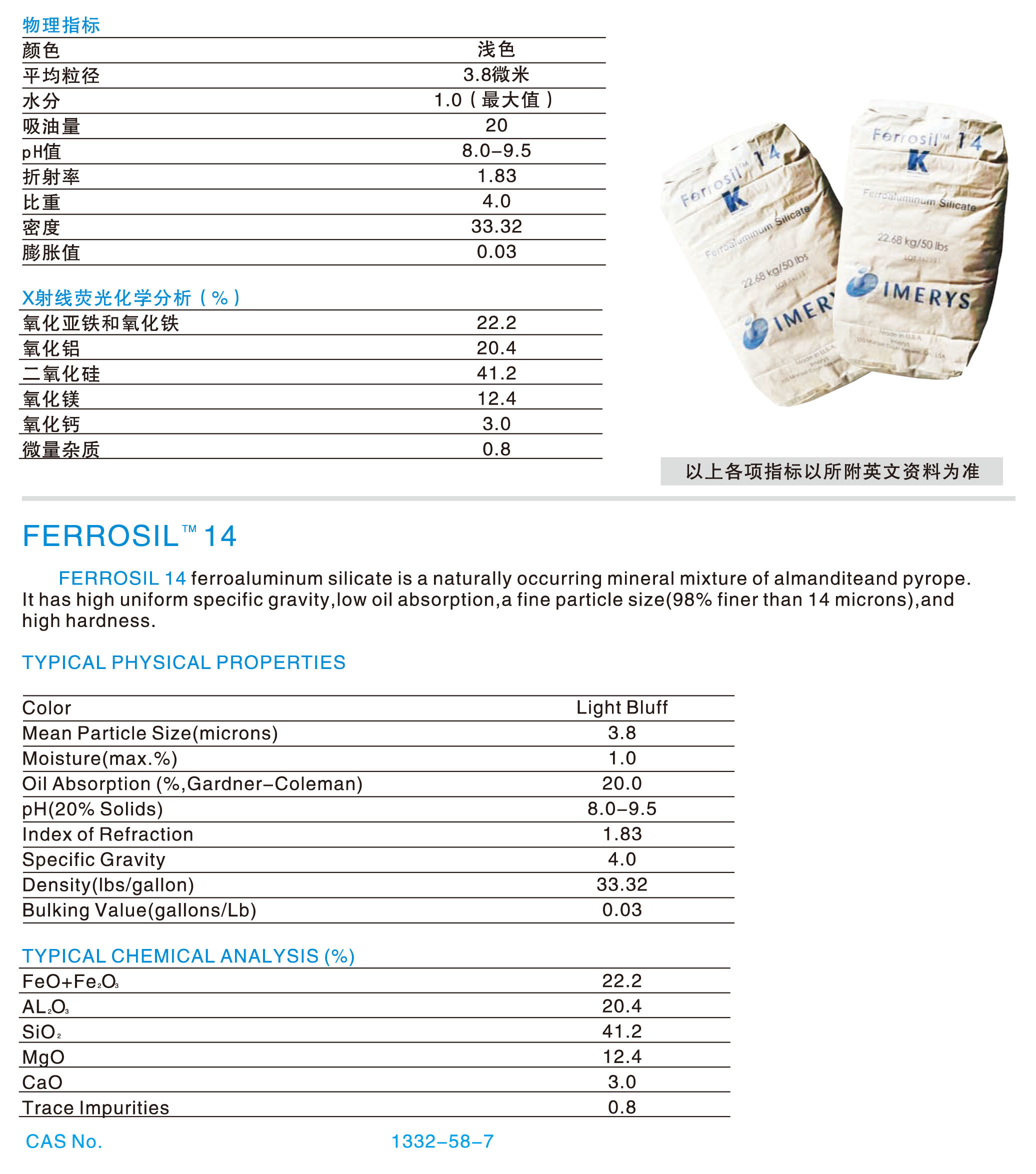 水(shui)洗高嶺土 FERROSIL 14